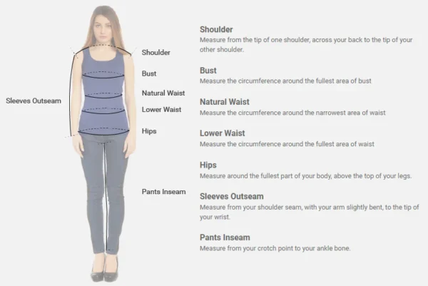 WOMEN'S JACKET SIZE CHART MEASUREMENT IN INCHES