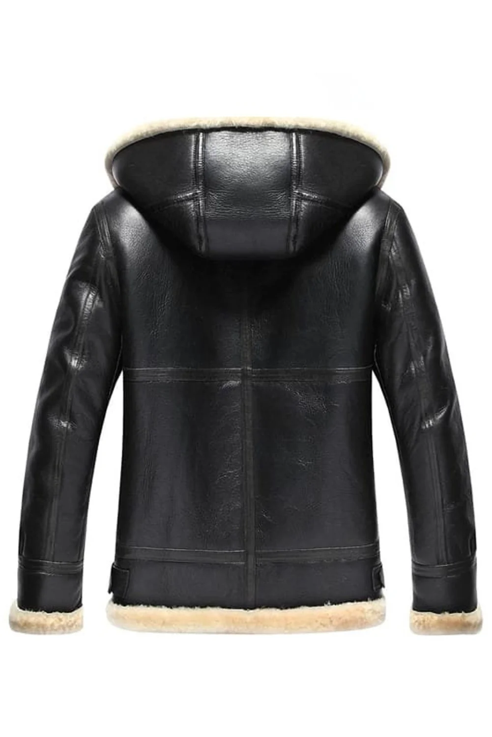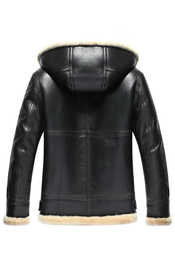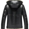 Britney Black Shearling Leather Bomber Jacket Hood
