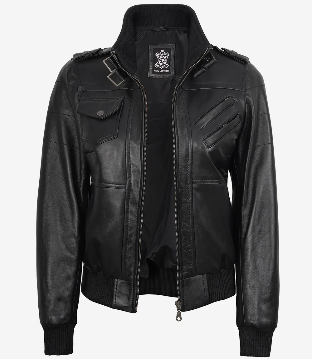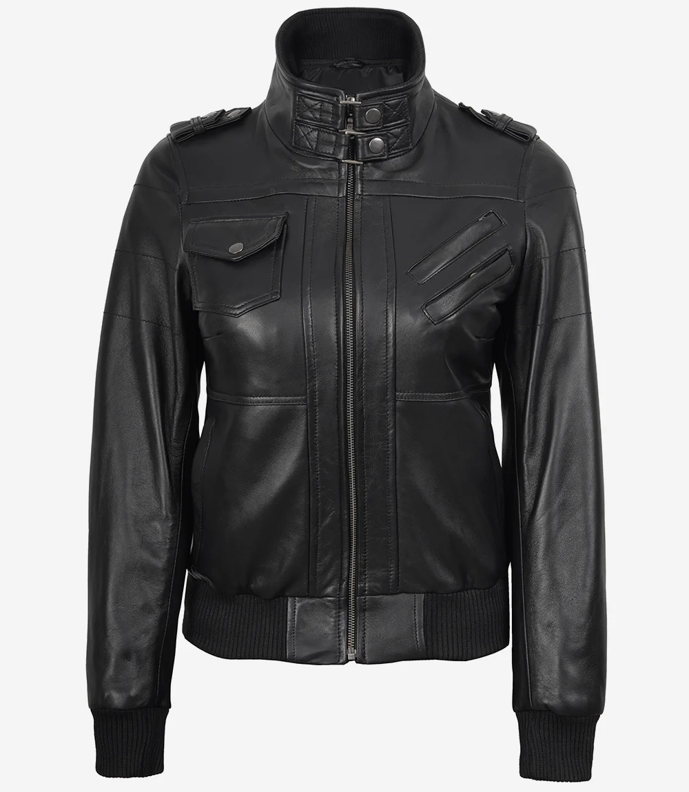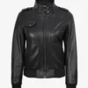 Edinburgh Women’s Bomber Black Leather Jacket