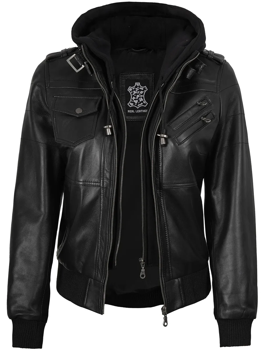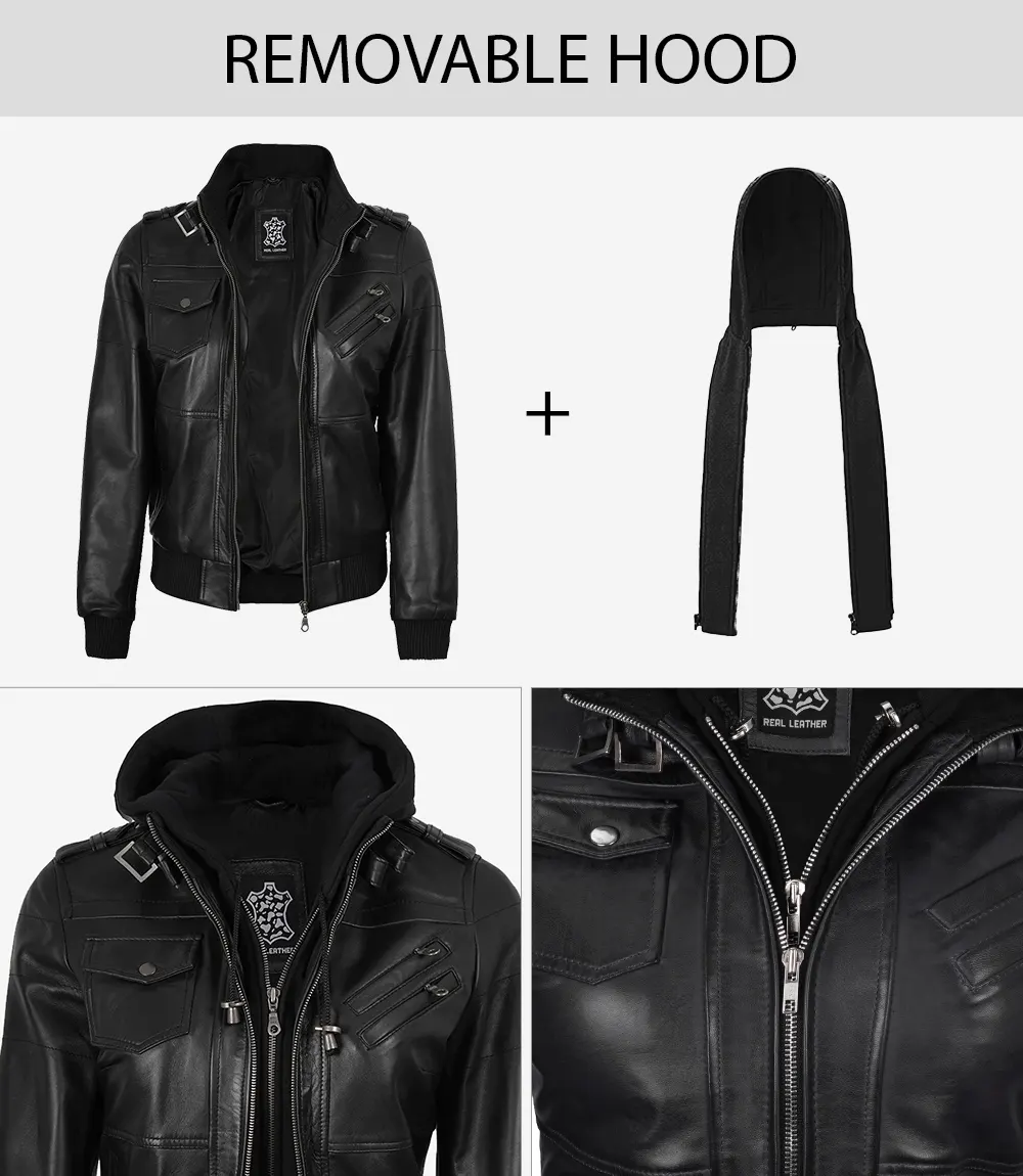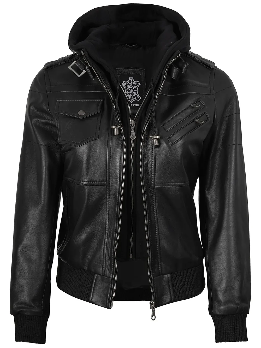 Elite Biker Jacket – Women’s Black Hooded Moto Leather Jacket