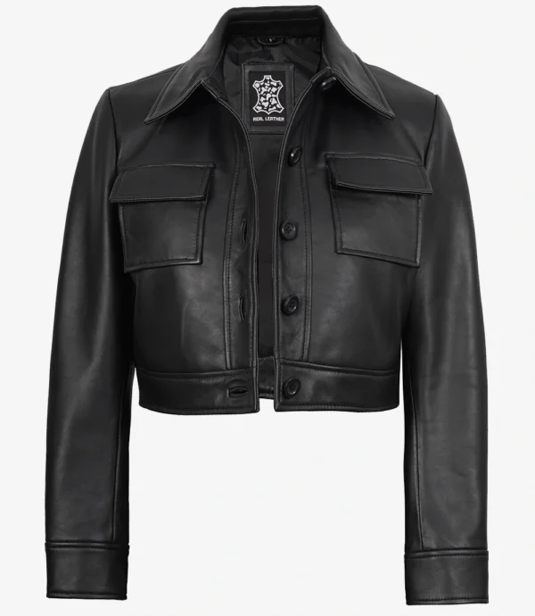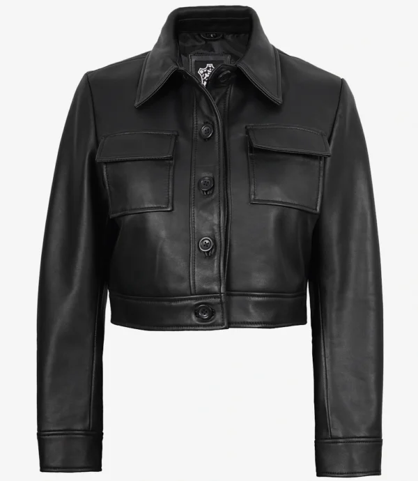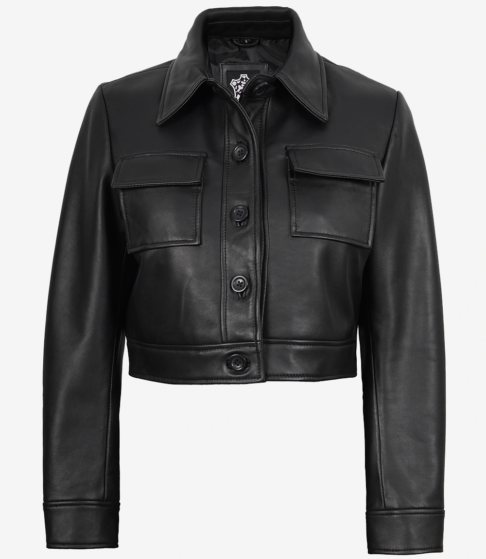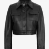 Freddie Women’s Black Harrington Cropped Leather Jacket