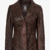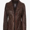 Kathryn Snake Pattern Women’s Cognac  Leather Blazer