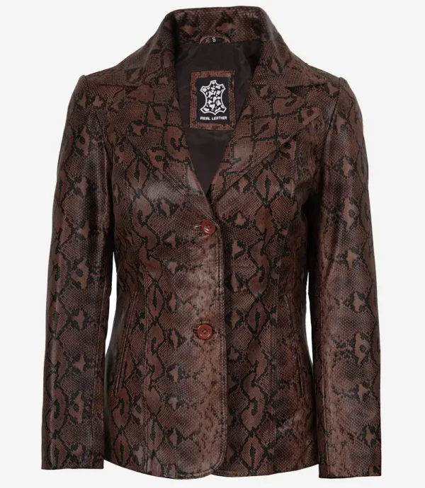 Kathryn Snake Pattern Women’s Cognac Two Button Leather Blazer