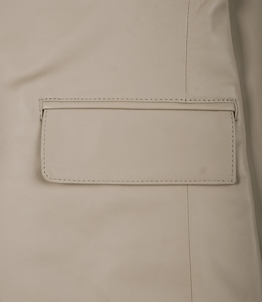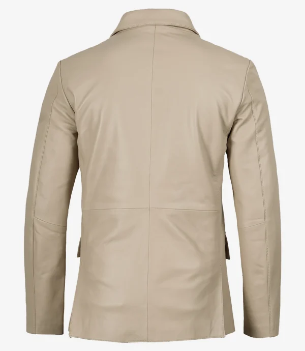 Men’s Beige Real Leather Blazer Jacket