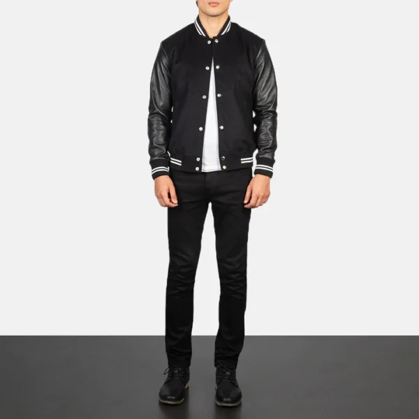 Be the first to review “Vaxton Black Striped Hybrid Varsity Jacket”