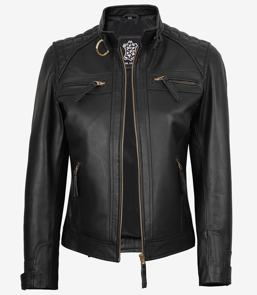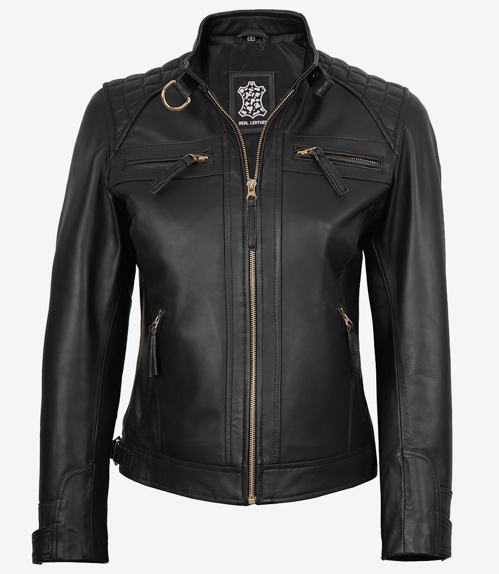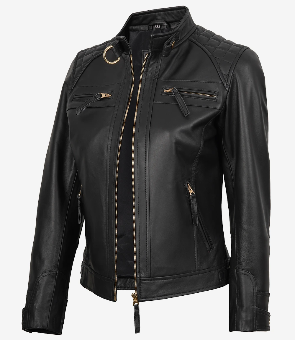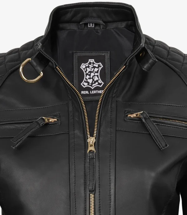Women’s Black Quilted Biker Leather Jacket Trend Style