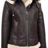Women’s Brown Shearling Bomber Jacket Hood B3 RAF