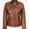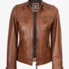 Women’s Cafe Racer Tan Real Leather Jacket