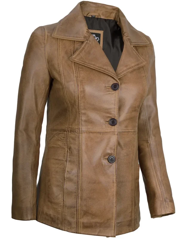 Elite Biker Jacket — Elegant Two-Button Genuine Camel Lambskin Leather Jacket Blazer.Add effortless sophistication to your style with the Elegant Camel Brown Two-Button Genuine Leather Blazer Jacket from Elite Biker Jacket. Crafted from premium real leather, this blazer delivers a rich camel hue, soft texture, and structured silhouette. Featuring a tailored fit, two-button closure, and refined stitching, it combines timeless class with modern elegance. Perfect for business meetings or evening outings, this leather blazer enhances every outfit with warmth and style. Designed for women who appreciate luxury and confidence, Elite Biker Jacket brings premium craftsmanship and enduring fashion together in this exquisite piece.
