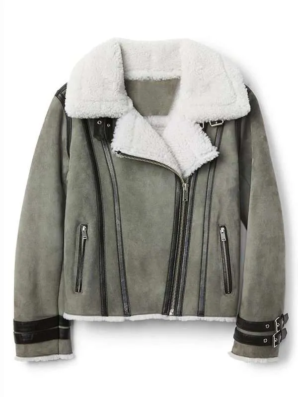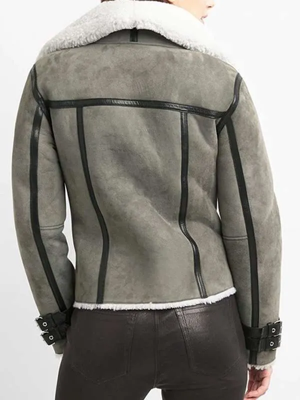 Women’s Bomber Grey Shearling Suede Leather Jacket