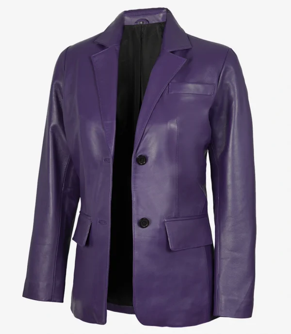 Women’s Two Button Purple Leather Blazer Jacket