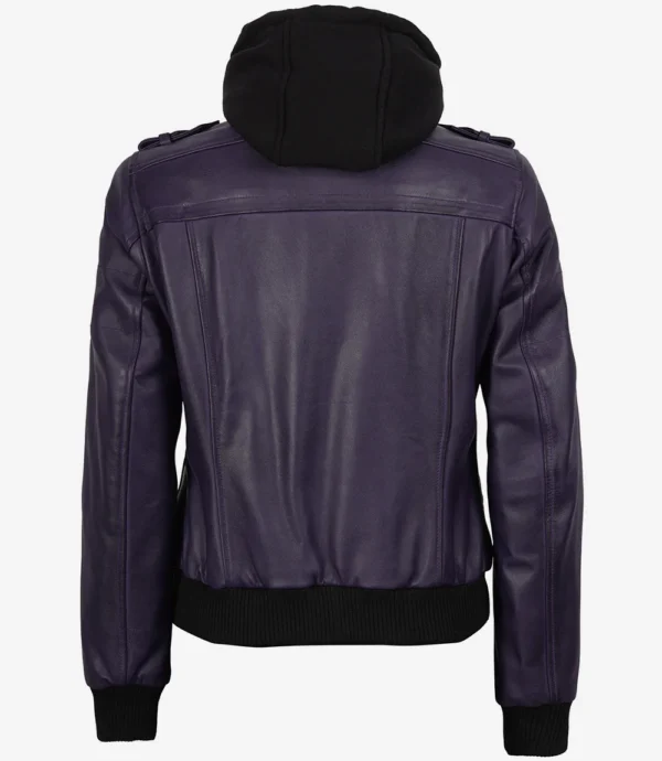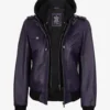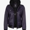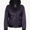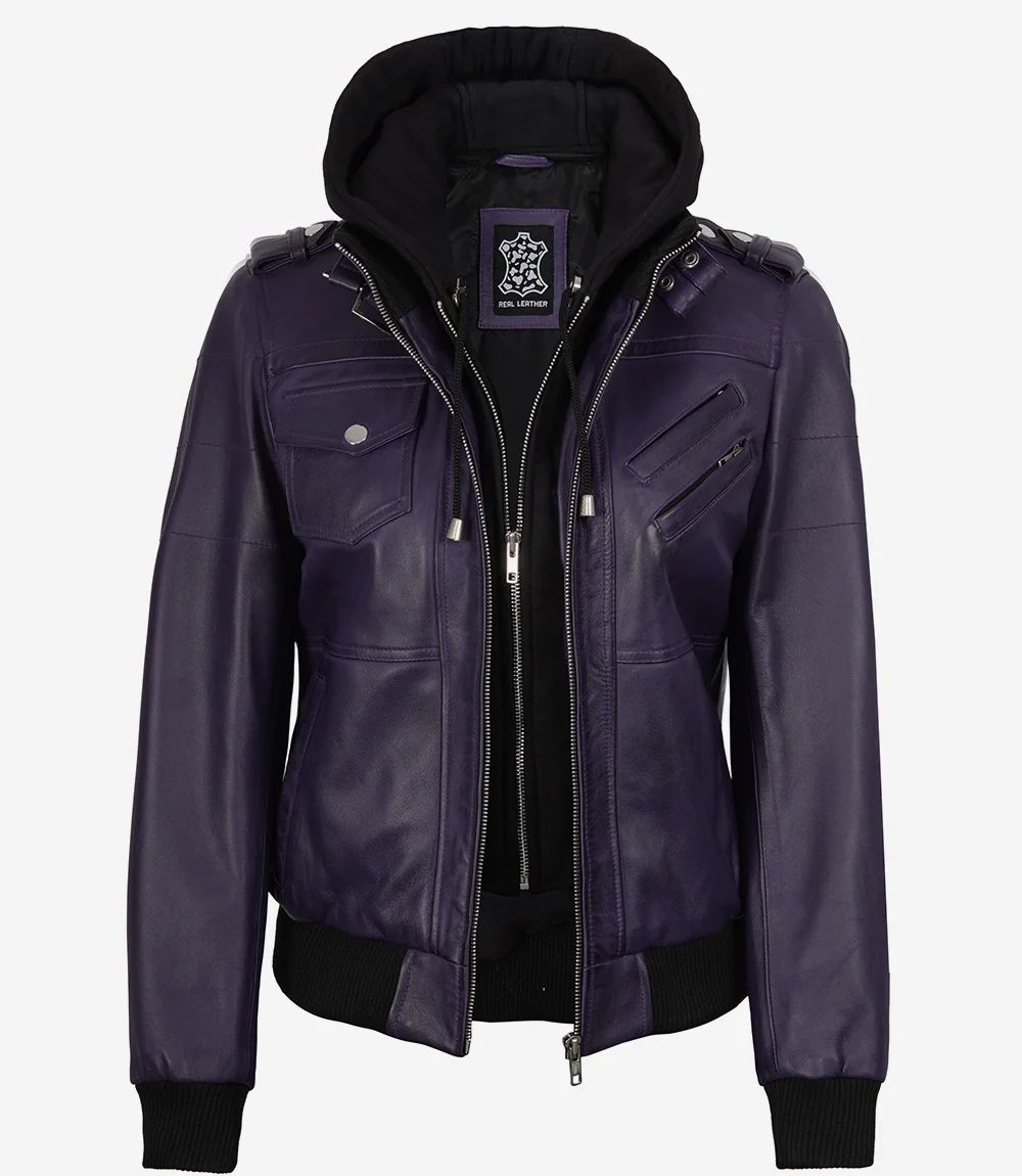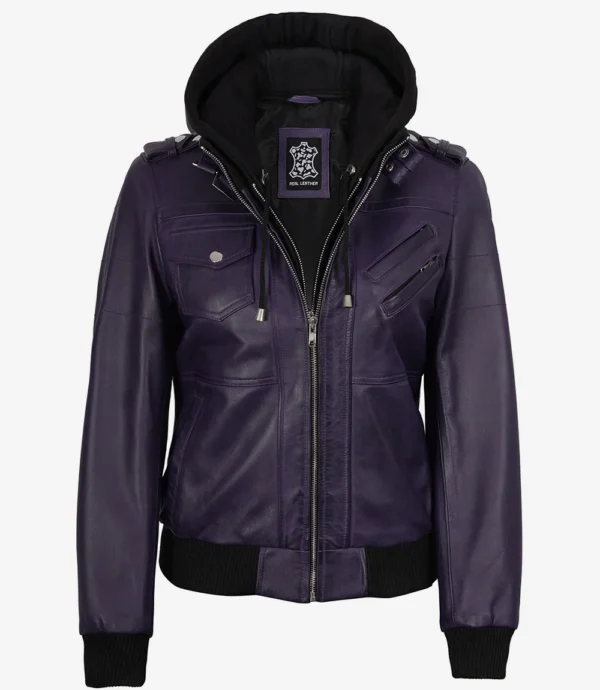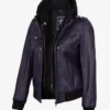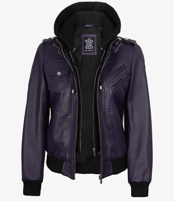 Women’s Purple Leather Jacket — Removable Hood
